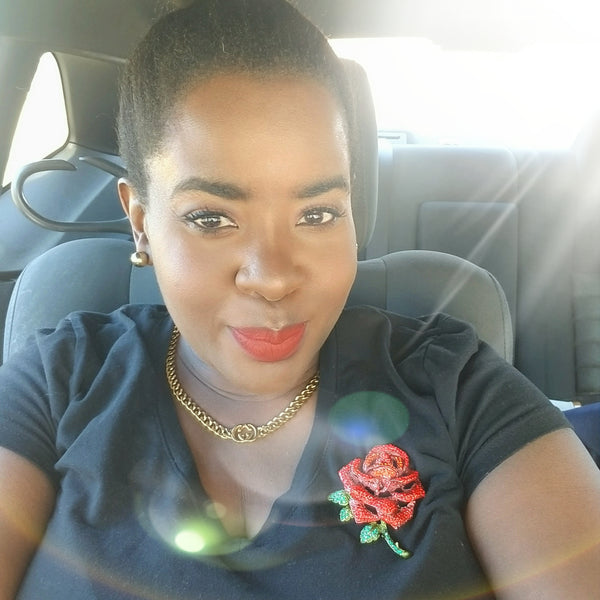 3 by 4 inch brooch. Red stone and green embellished rose. Allow 2-5 business days for delivery