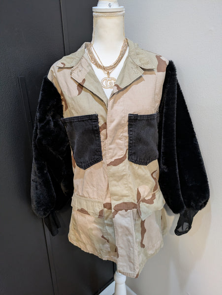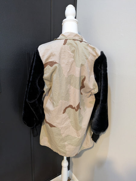 Where the military meets fur! Vintage military jacket trimmed in fur. Allow 5 business days for delivery