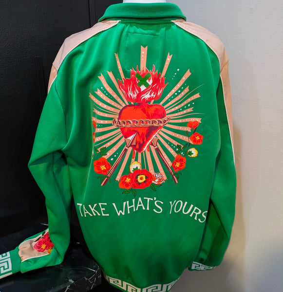 Stretch jogger material. Zip up. Floral design. Allow 2-5 business days for delivery