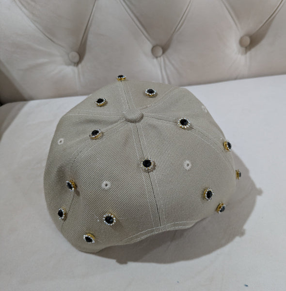Black and khaki hat. Goes with everything. Adjustable. Fits all head sizes. Jewel Embellished. Allow 2-5 business days for delivery