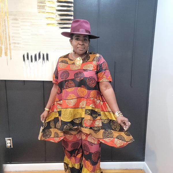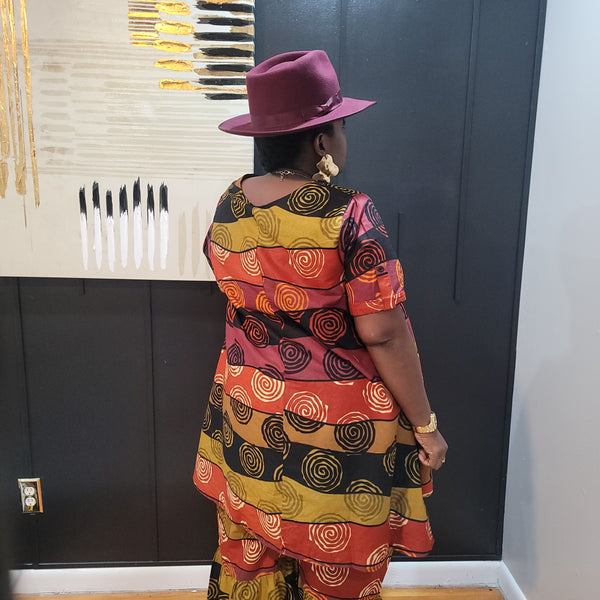 Three piece not stretch. Oversized scarf included. Top and pants have pockets. Stretch waist. Attached belt. One size fits S-2x. Allow 2-5 business days for delivery