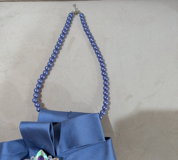 Lavender Brooch Tie. Iridescent Stone Embellishment Pearl Necklace Included . Allow 2-5 business days for delivery