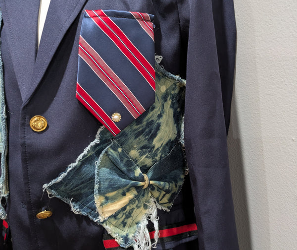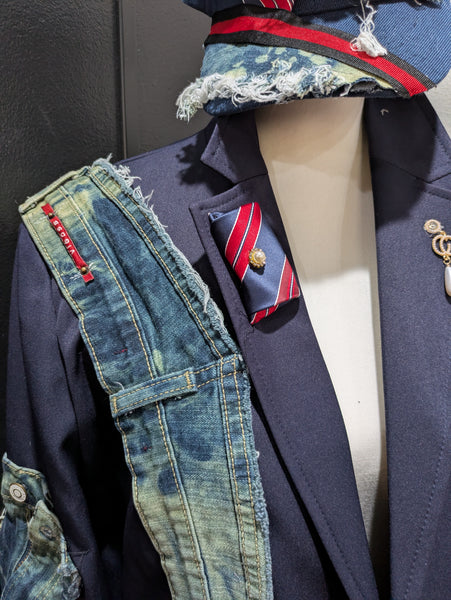 Custom navy and denim blazer. Gold buttons. Non stretch. Lined. Allow 2-5 business days for delivery