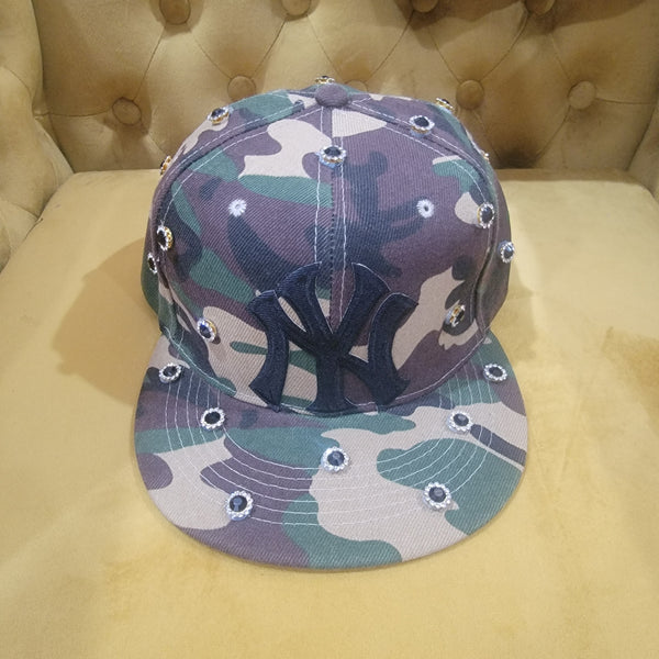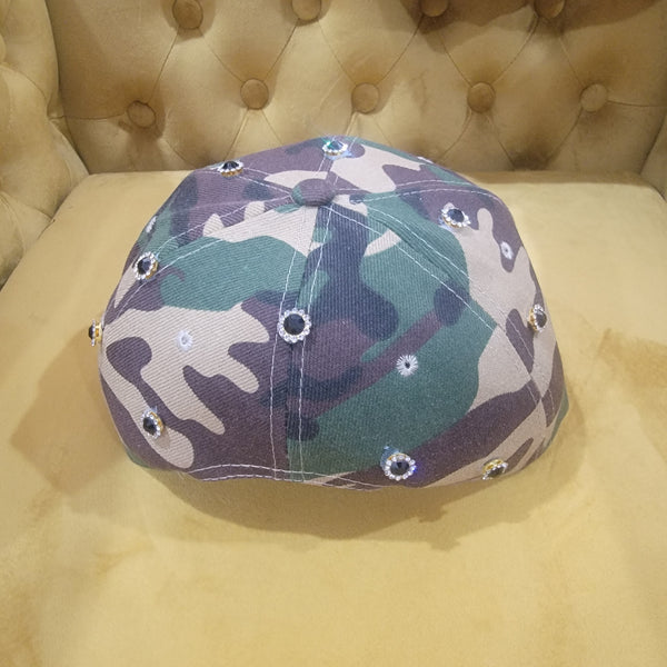 Black and khaki hat. Goes with everything. Adjustable. Fits all head sizes. Jewel Embellished. Allow 2-5 business days for delivery